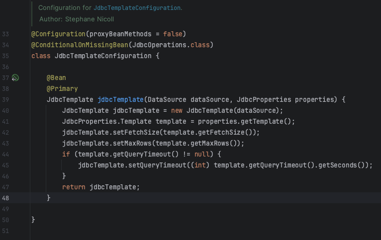 따라가 보면 JdbcTemplate에 대한 코드가 있다.