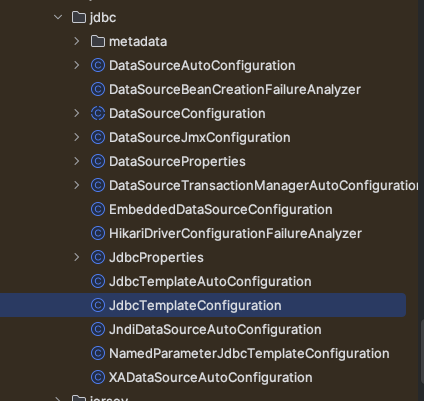 springboot - autoconfigure에 있는 클래스 JdbcTemplateConfiguration이 있는 것을 알 수 있다.
