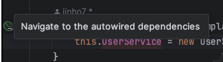 해당 버튼을 누르면, 자동으로 의존성이 주입된 곳을 가르켜 준다.
