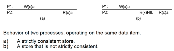 - “ P1 : W(x)a “ : 프로세스 P1이 공유 데이터 x에 대해 a라는 값을 쓰기(Write) 작업 수행함.