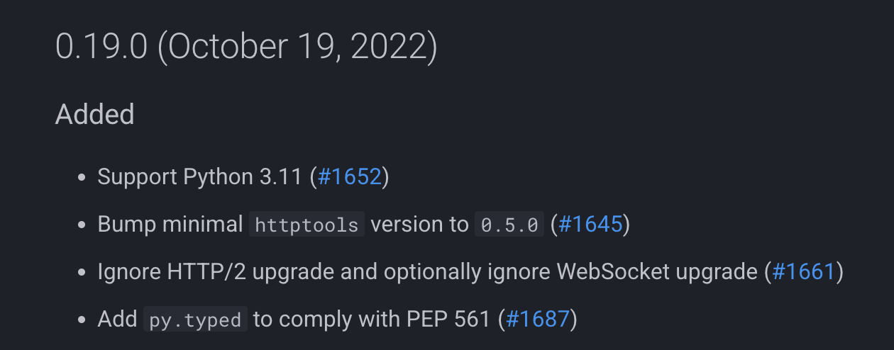 이 코드는 https://github.com/MagicStack/httptools/issues/124 이슈와 연결된다.