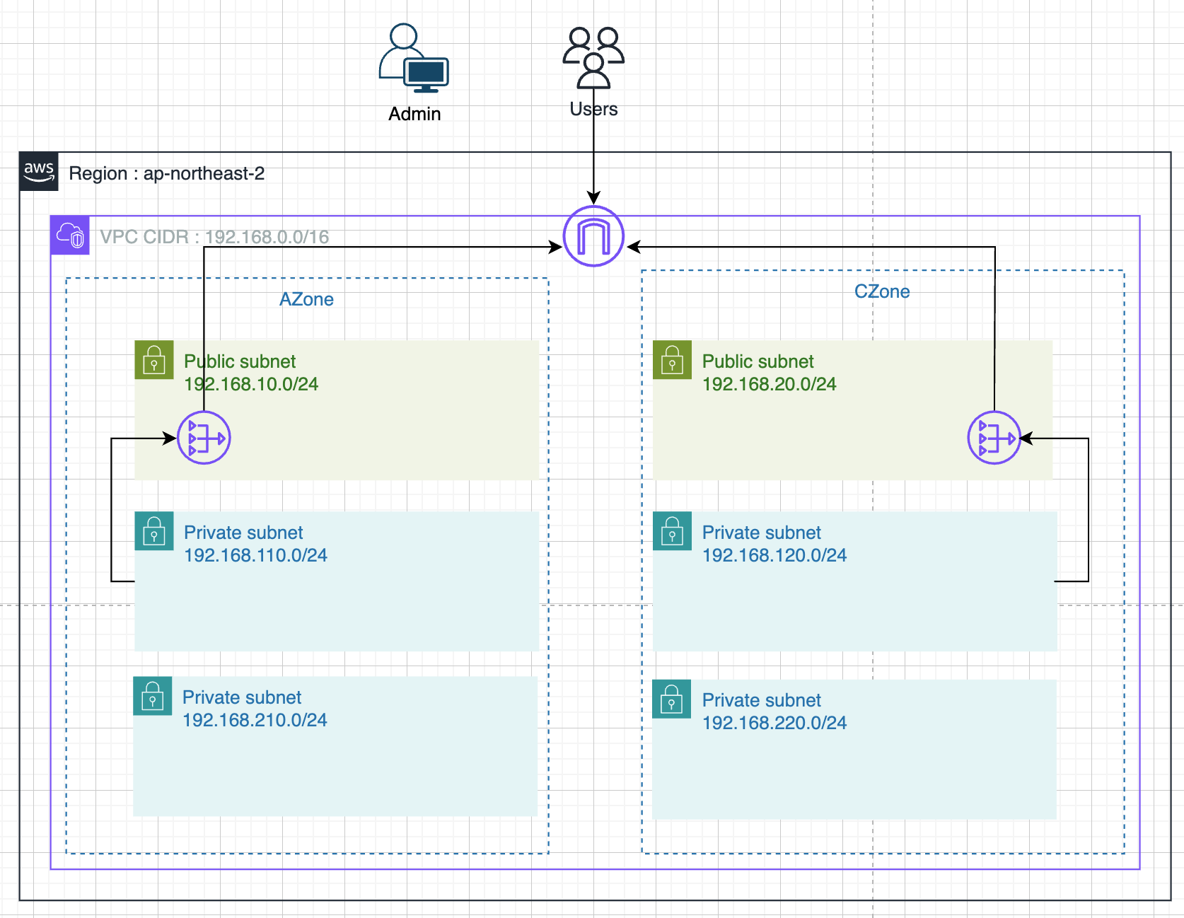 NAT Subnet - AZone:192.168.110.0/24, AZ:ap-northeast-2a