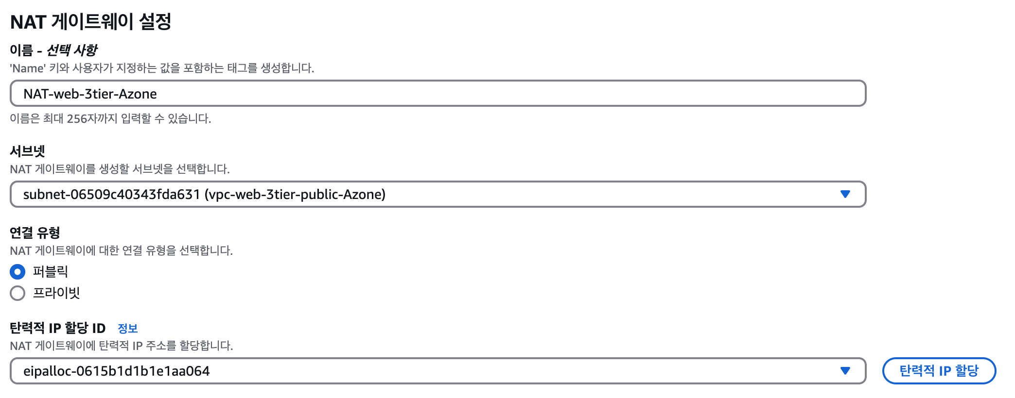- 생성 후 subnet-web-3tier-nat-Azone 서브넷 연결