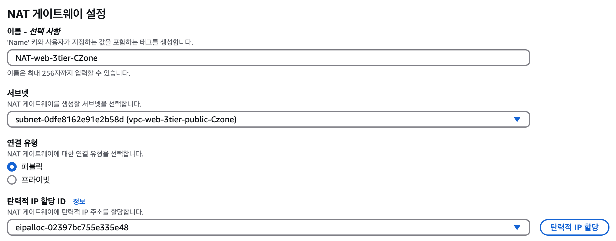 - 생성 후 subnet-web-3tier-nat-Czone 서브넷 연결