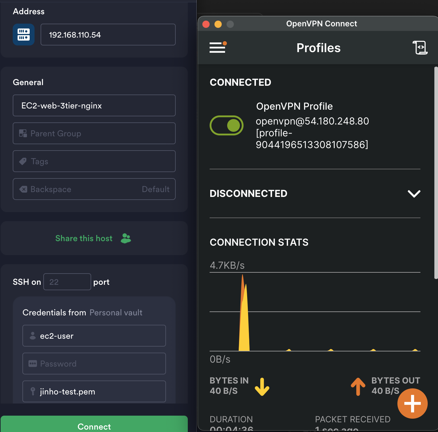 - OpenVPN을 사용하면 내 로컬 PC가 AWS 내부 네트워크의 일부처럼 동작하며, Private Subnet 내 자원과 직접 통신할 수 있게 된다.
