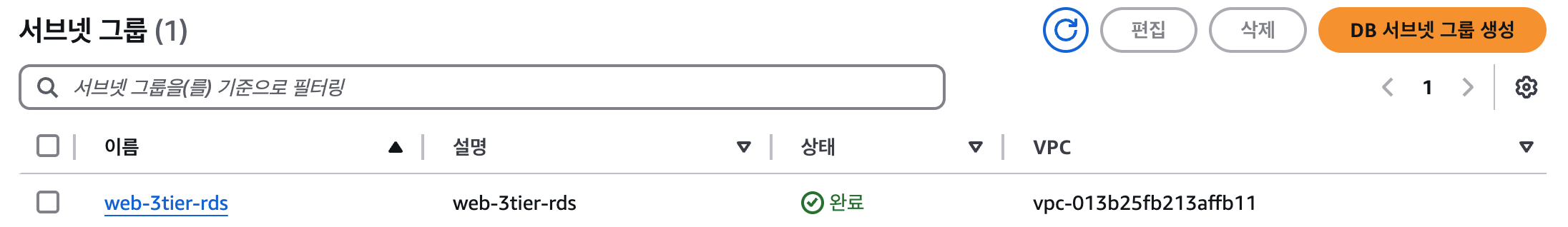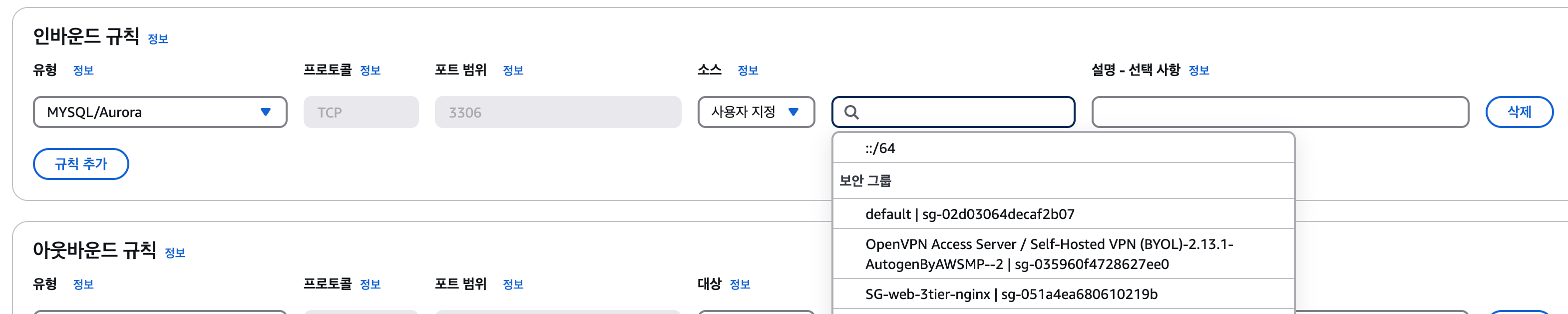 - 위에서 만든 “SG-web3-tier-db” 선택