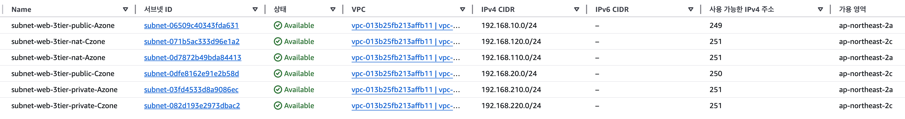 - subnet-web-3tier-private-Azone (192.168.210.0/24)