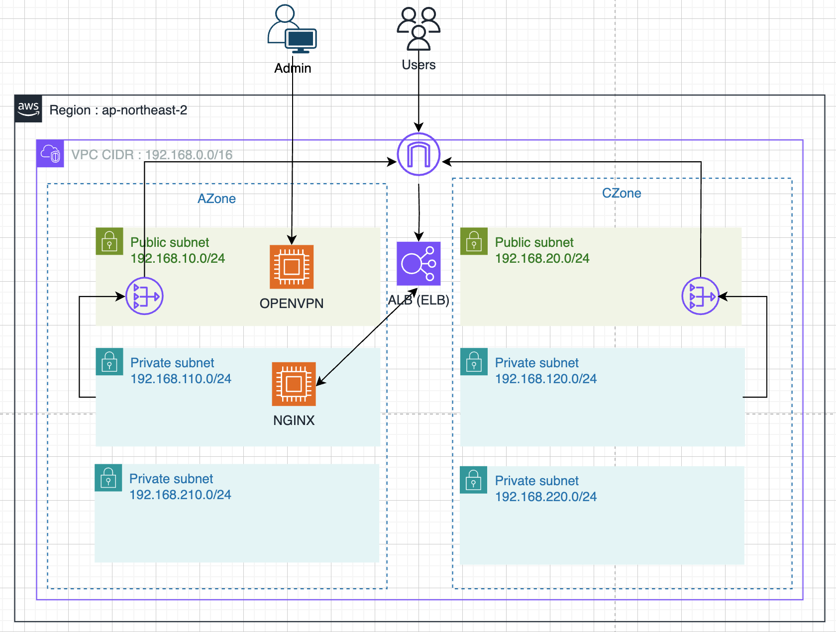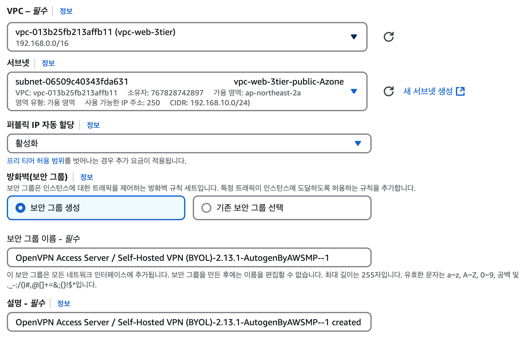- OpenVPN: VPN 연결을 통해 사용자가 Private Subnet의 리소스에 접근할 수 있도록 해주는 역할