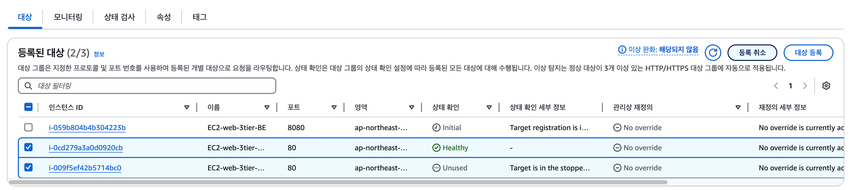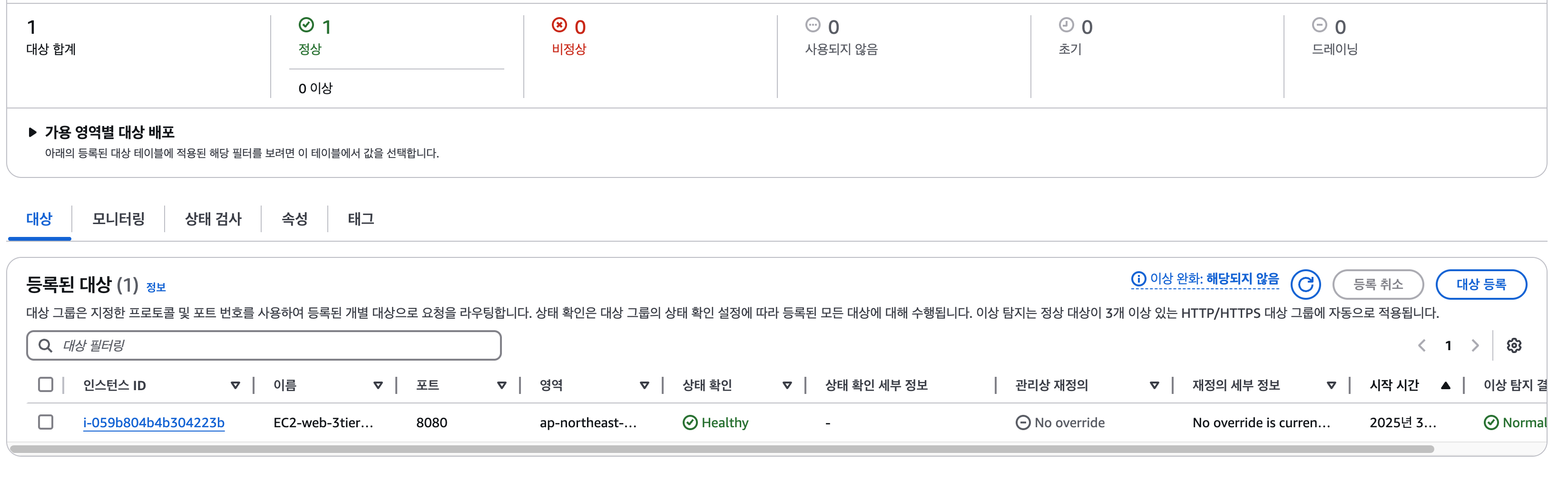 - HTTP: 80으로 현재 대상그룹 Health Check 중
