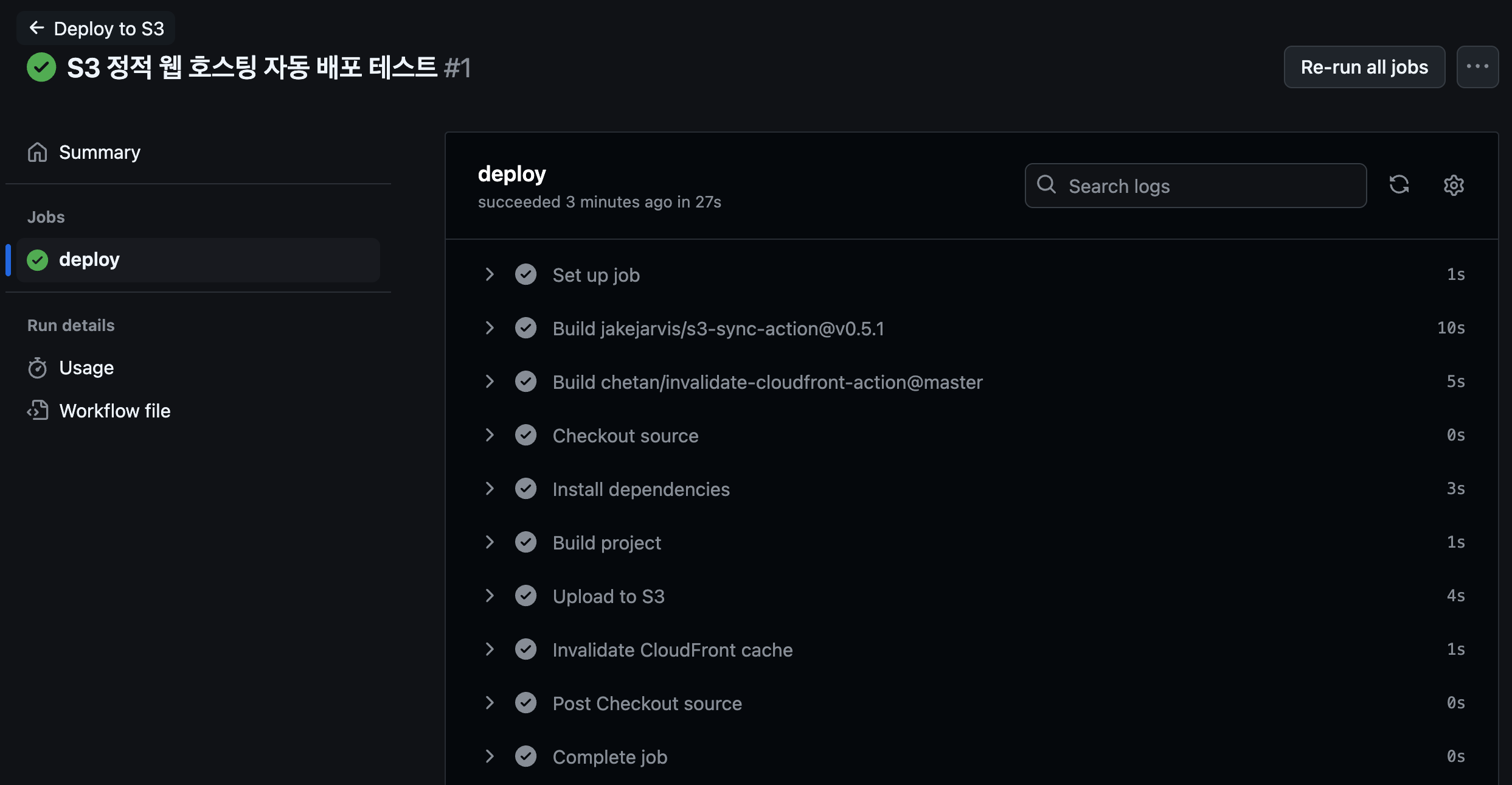 - 참고 : 디테일하게 표현하면, “CloudFront를 통한 S3 정적 웹 호스팅 성공”으로 변경해주자.