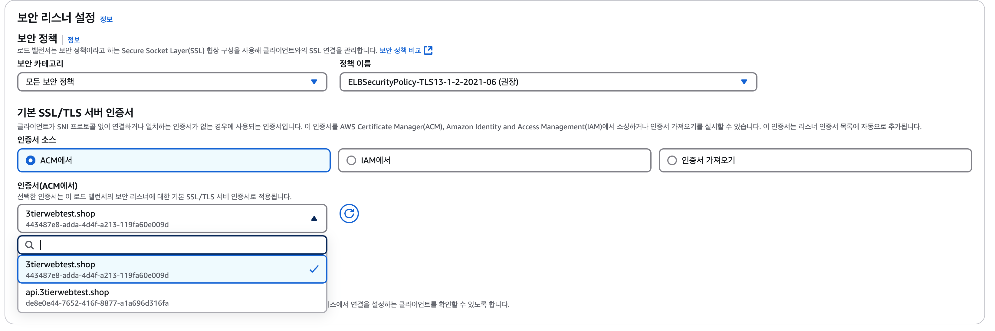 - 서울 리전에 api.3tierwebtest.shop ACM 새로 만들기