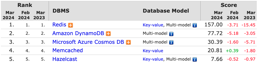 해당 url에서 보면 key-value Store 부문에서 압도적인 사용률을 차지하는 것을 알 수 있다.